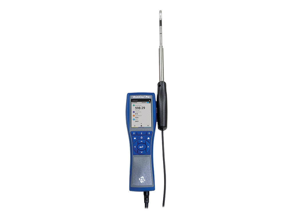 VelociCalc™ 多功能通风表9650型用于测量暖通空调系统的压力,并可连接皮托管进行风管截面法测量。其人体工学设计包括探头支架和内嵌式磁铁,可轻松固定在裸露的风管或其他金属表面,实现免手持式操作。多功能通风表9650型可用于与多种插拔式探头配合使用,可测量风速或室内空气质量参数。此外,9650型还内置了计算室外空气百分比的工作流程,结合室内空气质量探头,可评估建筑物或房间的通风效果;结合964型或966型探头,可进行热流计算,用于测试加热和冷却盘管;并提供了风管截面法网格测量功能。