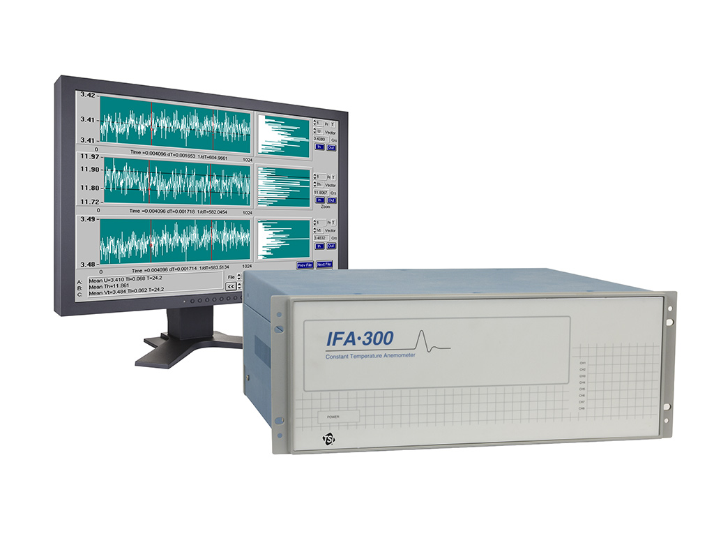 热线风速仪利用传感器在单点高精度、高响应频率进行速度测量。一套标准的热线风速仪有三个主要的组件,IFA-300恒温测速仪主机(CTA),传感器和ThermalPro软件。有许多不同类型的传感器,热线式或热膜式;1D(一维),2D(二维)或3D(三维),测量介质是气体或液体。热线风速仪是一种非常适合紊流测量的工具,因为它具有适于测量流体波动的高频响应特点以及应用于不同测量环境的传感器。