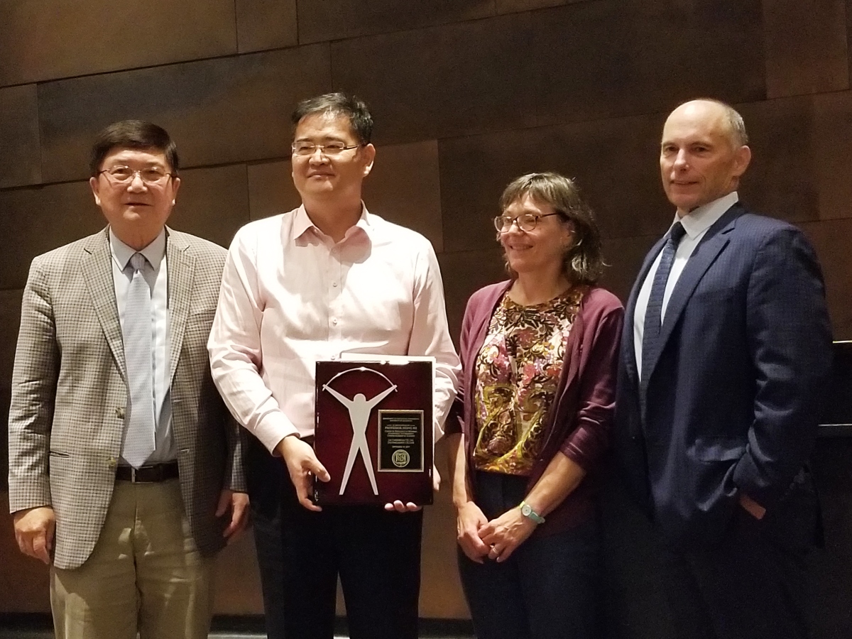 During the event on September 18, the Head of the Mechanical Engineering department, Dr. Susan Mantell presented Dr. He with a plaque honoring him as the 16th L.M. Fingerson / TSI Incorporated Distinguished Lecturer.
