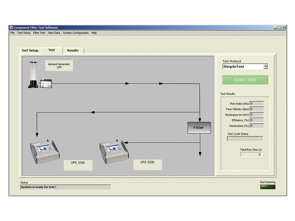 Das CFTS besteht aus Software und einem Hardwaremodul, um die Steuerung Ihres Filtertestsystems zu zentralisieren und Messdaten schnell und effizient zu sammeln. Das CFTS bietet analoge und digitale Ein- und Ausgänge zur Messung und Steuerung des Volumenstroms von Pumpen oder Gebläsen. Es verfügt über mehrere Anschlüsse zum Auslesen der Temperatur, des Drucks und der relativen Luftfeuchtigkeit. Die Software protokolliert diese Daten und ermöglicht deren Verwendung für Flusskorrekturen. Die Software ermöglicht das Definieren eines Testprotokolls, sammelt Daten von den Messgeräten, z.B. 3330 OPS, und erstellt Berichte. Falls gewünscht, wird auch eine Fraktionsabscheidegradkurve erstellt.