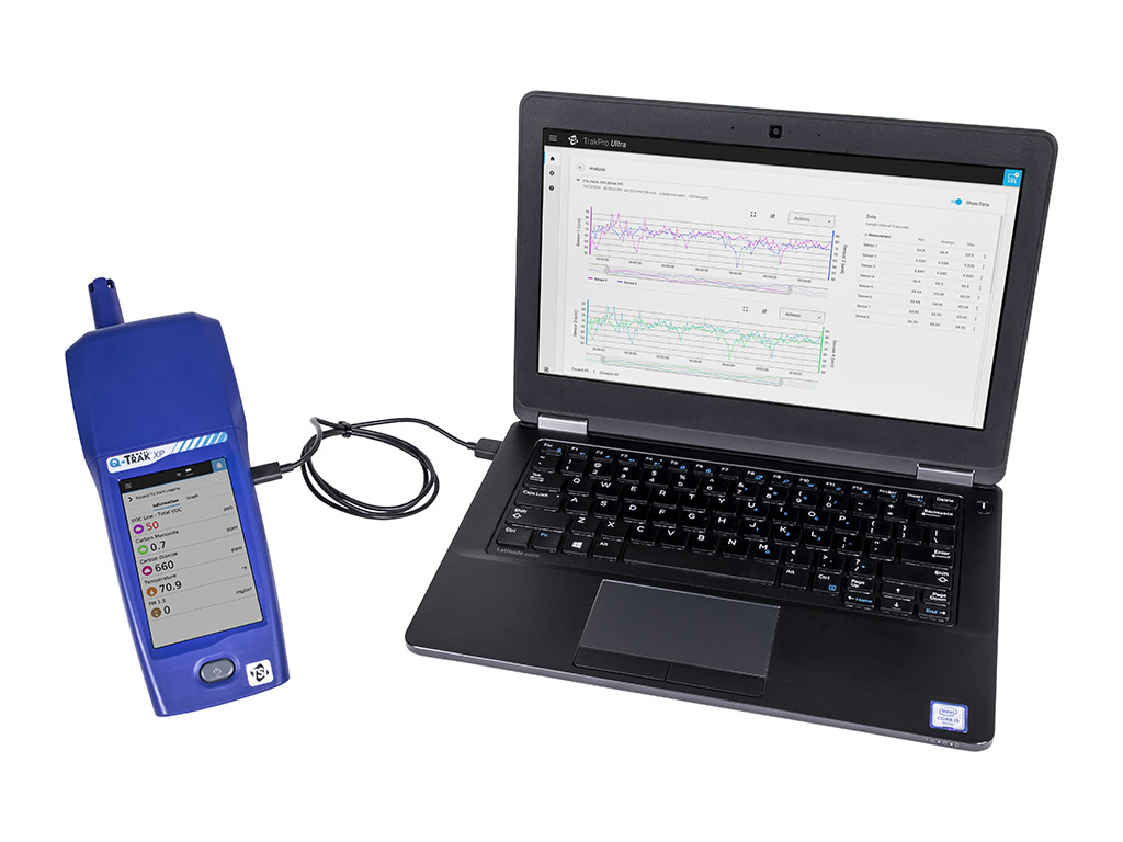 Das Luftqualität-Messgerät Q-Trak XP™ kann eine Vielzahl verschiedener Raumluftqualitätsmessungen und Datenaufzeichnungen durchführen. Das leistungsstarke, kompakte Multisensormodul unterstützt bis zu 6 wählbare Gassensoren und misst gleichzeitig Partikelmassenkonzentration, Partikelanzahl, Temperatur und relative Feuchtigkeit. Standard-IAQ-Berechnungen einschließlich Feuchtkugel, Taupunkt und % der Außenluftmischung werden ebenfalls unterstützt.