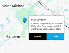 Ajustez l'emplacement de la bulle de localisation de l'appareil si nécessaire et / ou cliquez sur DONE.
