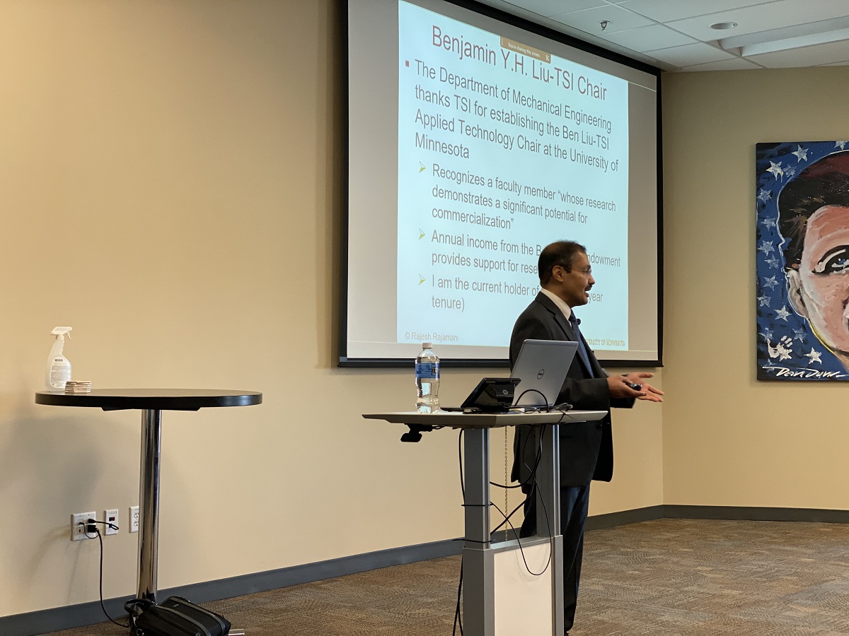 TSI welcomed Dr. Rajesh Rajamani to our Shoreview headquarters on Friday, December 6. The company invited Dr. Rajamani to speak on his current work and to accept a gift from TSI that honors him as the first recipient of the Benjamin Y.H. Liu - TSI Applied Technology Chair in Mechanical Engineering. Read the press release, Inaugural Holder of the Liu-TSI Applied Technology Chair Presents Seminar at TSI.