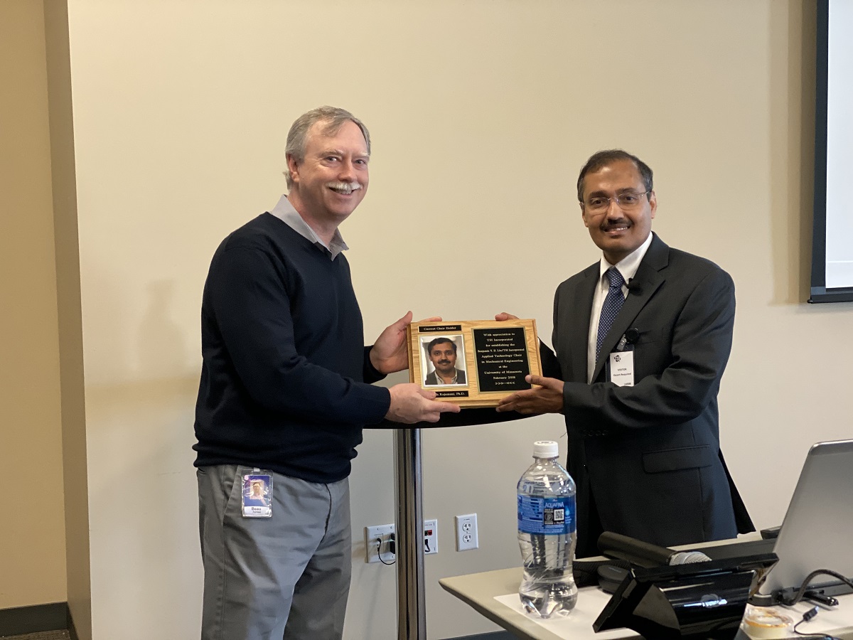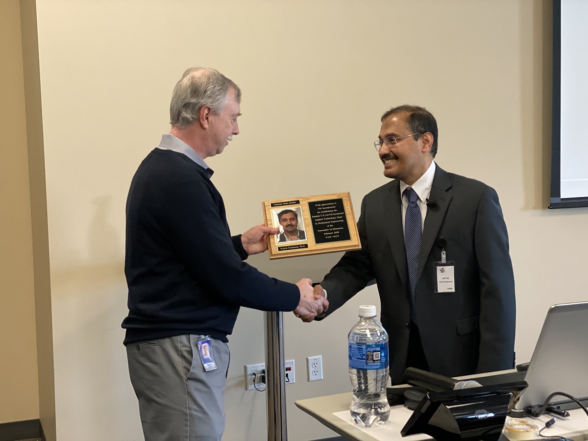 TSI Chief Technology Officer Beau Farmer introduced Dr. Rajamani to the TSI audience and later presented him with a gift. After the seminar, Dr. Farmer reveled the new plaque honoring Dr. Rajamani that will hang over the Liu-TSI Chair in the Shoreview building.
