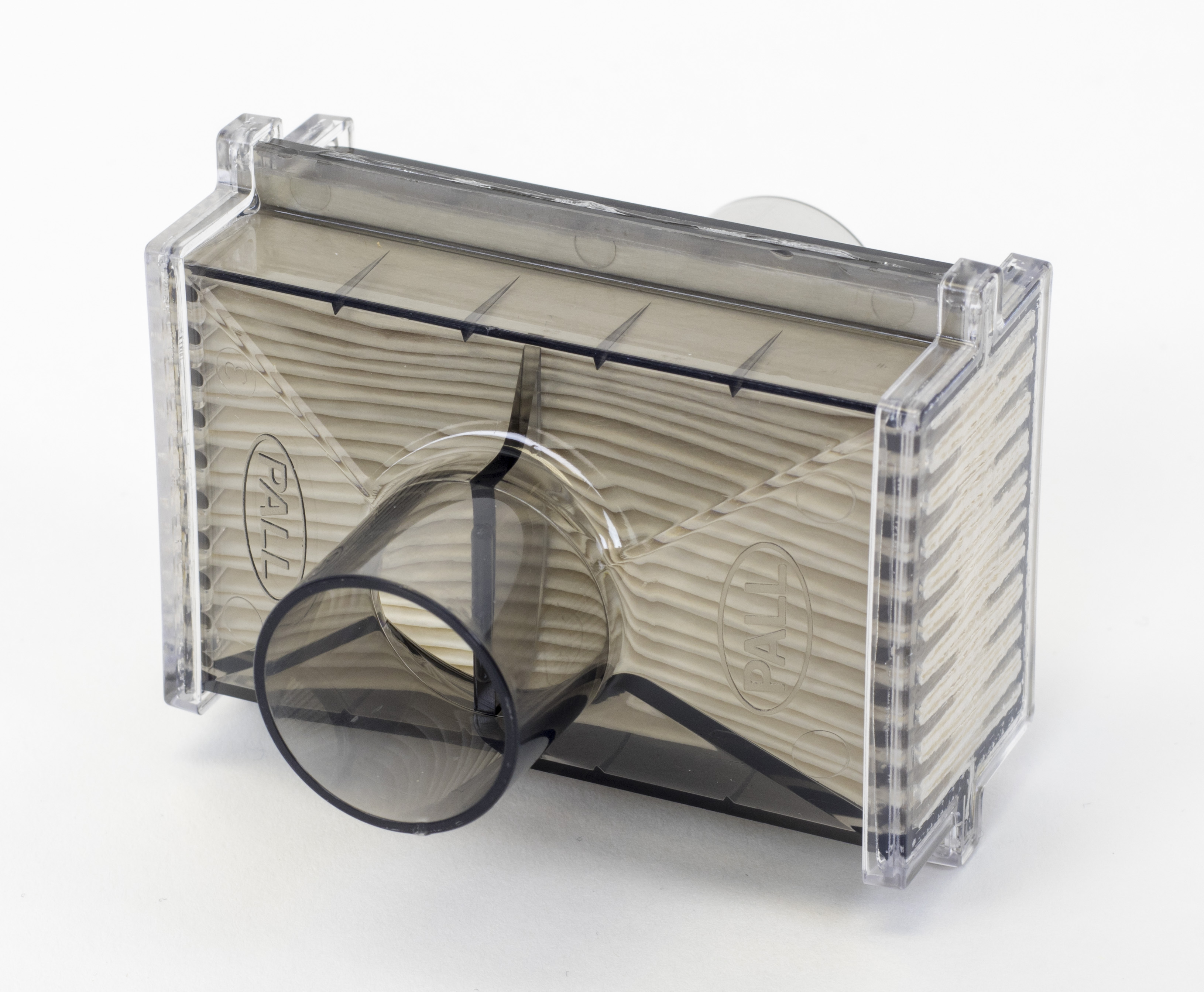 High Flow Filter, HEPA, 22mm OD and 22mm ID connection. Resistance ~1.0 cm H2O @ 60 L/min.