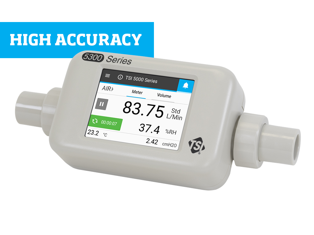 TSI Flow Meters are lightweight, compact, and can measure across a wide dynamic operating range. The 5000 Series Flow Meter also incorporates configurable tube end adapters, touchscreen control, and multiple mounting options. Whether measuring gas flows in a laboratory, manufacturing, or service setting, the 5000 Series Flow Meter can adapt to fit your unique application.