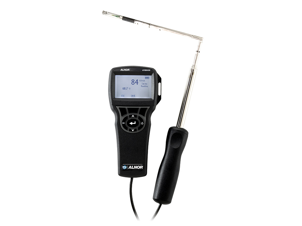 The Alnor® Velometer® Thermal Anemometer AVM440-A is like having multiple meters for the price of one, yet it is very simple to operate. The AVM440-A includes an articulated probe; all in one compact package.